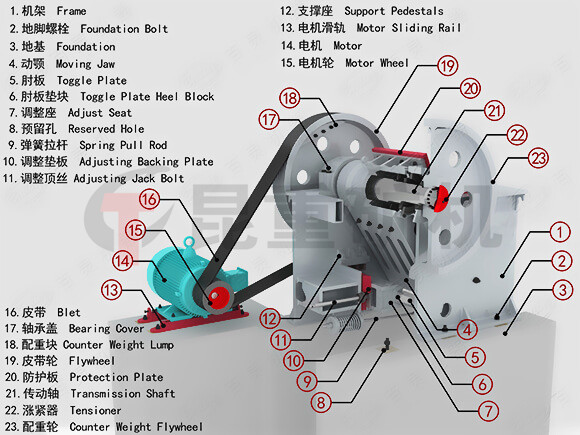 顎式破碎機配(pèi)件示(shì)意圖: