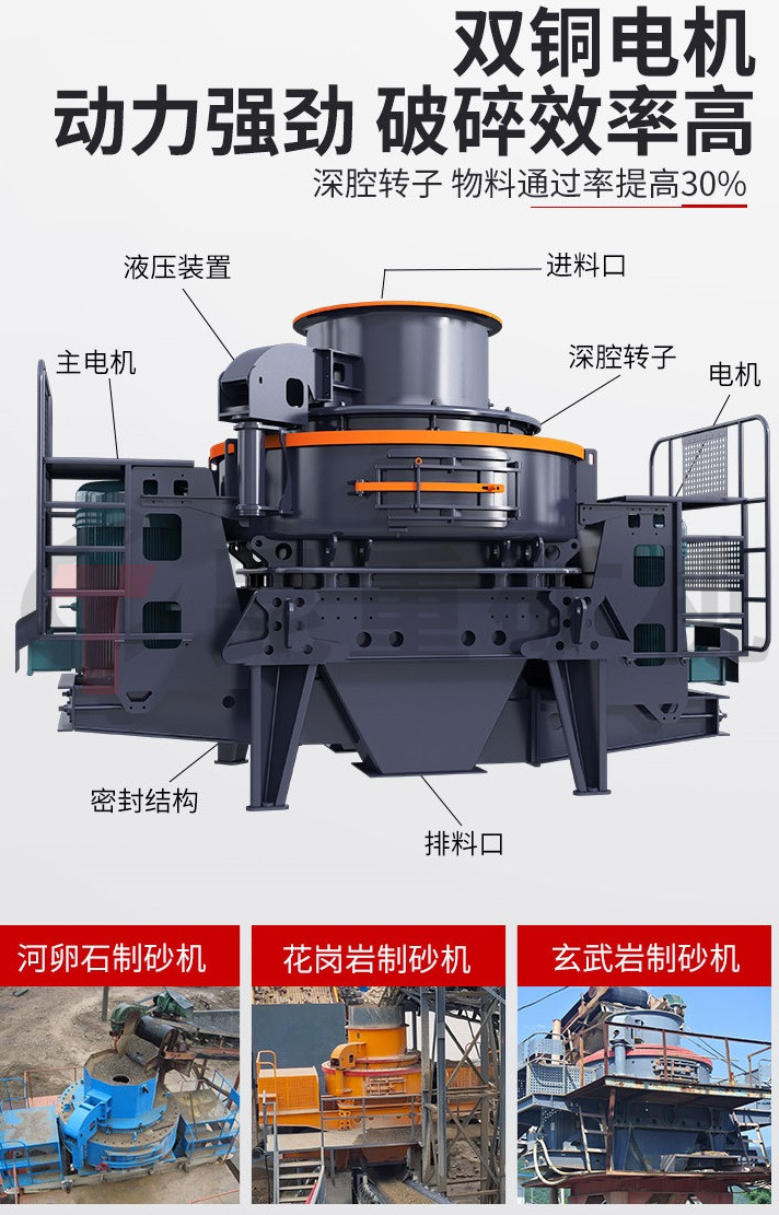 vsi整形製砂機(jī)是91香蕉视频app礦機通過衝擊式製砂機改良(liáng)的新型5X製砂機,有效的提升機器性能,降低磨損率(lǜ)、延長維(wéi)修周期、降低維修耗時、具(jù)有節能,產量高,能源利用率高,產品粒型優良,維護檢修方便,應用廣(guǎng)泛等特點,滿足現代砂石生產的需求。vsi整形製(zhì)砂機廣泛用於高速公路、高速鐵路、高層建築、水(shuǐ)利水電建設、混凝(níng)土攪拌站等行業,提供標準的砂石骨料,是人工製砂和石料整形領域(yù)的常用設(shè)備。