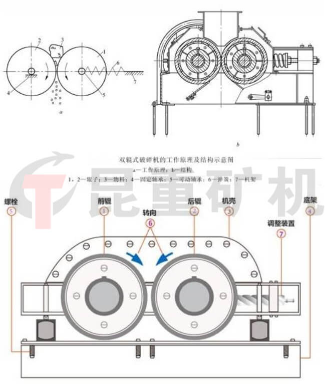 物料由進料口進入輥子之間,通過擠壓作用破碎河卵石,兩輥輪之間有(yǒu)一定的間隙,兩輥輪間(jiān)隙變大,物料出料粒度變大,在壓緊彈簧(huáng)的作用下兩輥(gǔn)輪間隙變小,出料粒度變小。通過改變調整間隙,可以控製物料的出料粒度。對(duì)輥製(zhì)砂機是利用兩個高(gāo)強度耐磨合金破碎輥(gǔn),相對旋(xuán)轉(zhuǎn)產生(shēng)的高擠壓力(lì)來(lái)破碎物料,物料進入兩輥間(jiān)隙(V 型破碎腔)以後(hòu),受到兩破碎輥相對旋(xuán)轉(zhuǎn)的擠壓(yā)力和(hé)剪切力作(zuò)用,在擠軋、剪切和齧(niè)磨下(xià),將物(wù)料破(pò)碎成需要的粒度從排料口(kǒu)排(pái)出。