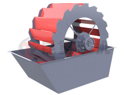 輪式洗(xǐ)砂(shā)機(jī)工作時,電機通(tōng)過三角帶、減速機、齒輪減速(sù)後帶動葉輪緩慢轉(zhuǎn)動,砂石有給料槽進入洗槽中,在(zài)葉輪的帶動下翻轉、攪拌、淘洗,並互相研磨,除去覆蓋砂石表麵的雜質,同時(shí)破壞包覆砂粒的水汽(qì)層,以(yǐ)利於脫水(shuǐ);同時加水,形成強大水流,及時將雜質及比重小的異物帶走,並從溢出口洗槽排出,完成清洗作用。幹淨的砂石由葉片帶走,砂石從旋轉(zhuǎn)的(de)葉輪倒入出料槽,完成砂石的清洗作業。